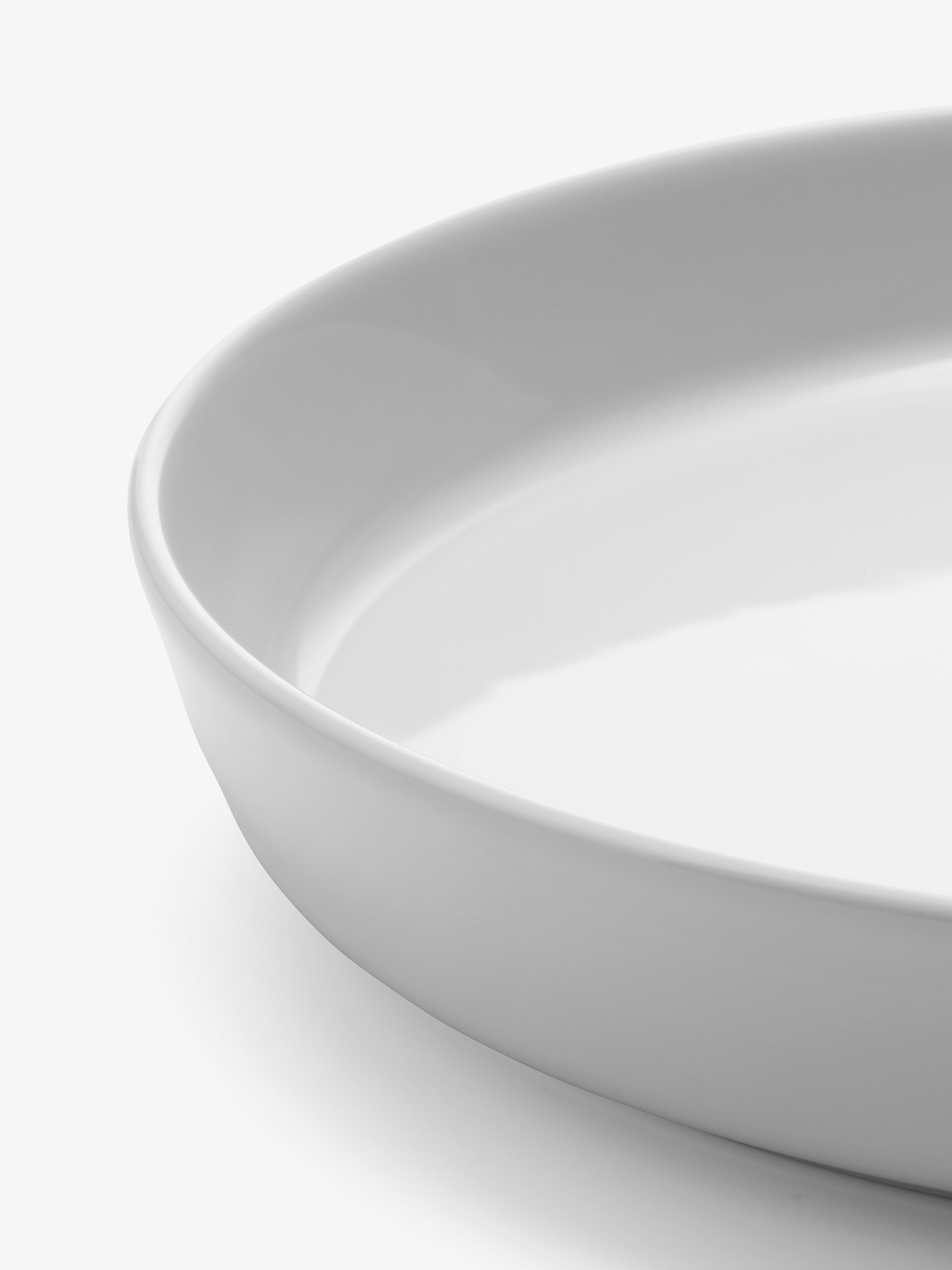 A wide porcelain bowl with a low, tapered profile. Versatile and contemporary tableware designed for different cuisines, environments and occasions. Made from vitrified porcelain that is dishwasher and microwave safe.