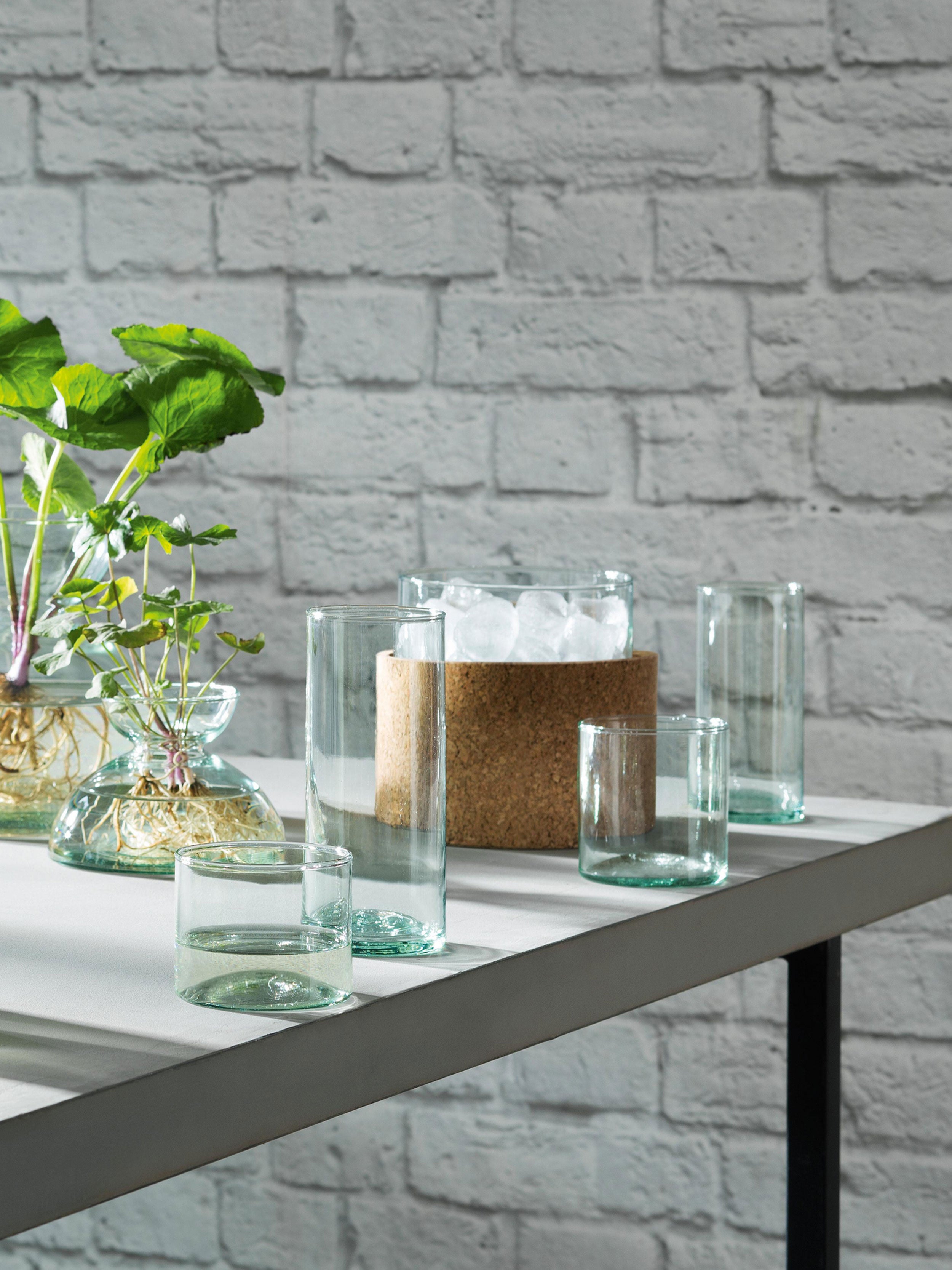 A cylindrical beer glass with a subtly domed base, inspired by the Eden Project’s biospheres. Mouthblown from recycled glass, following the sustainable practice of turning discarded material into something useful.