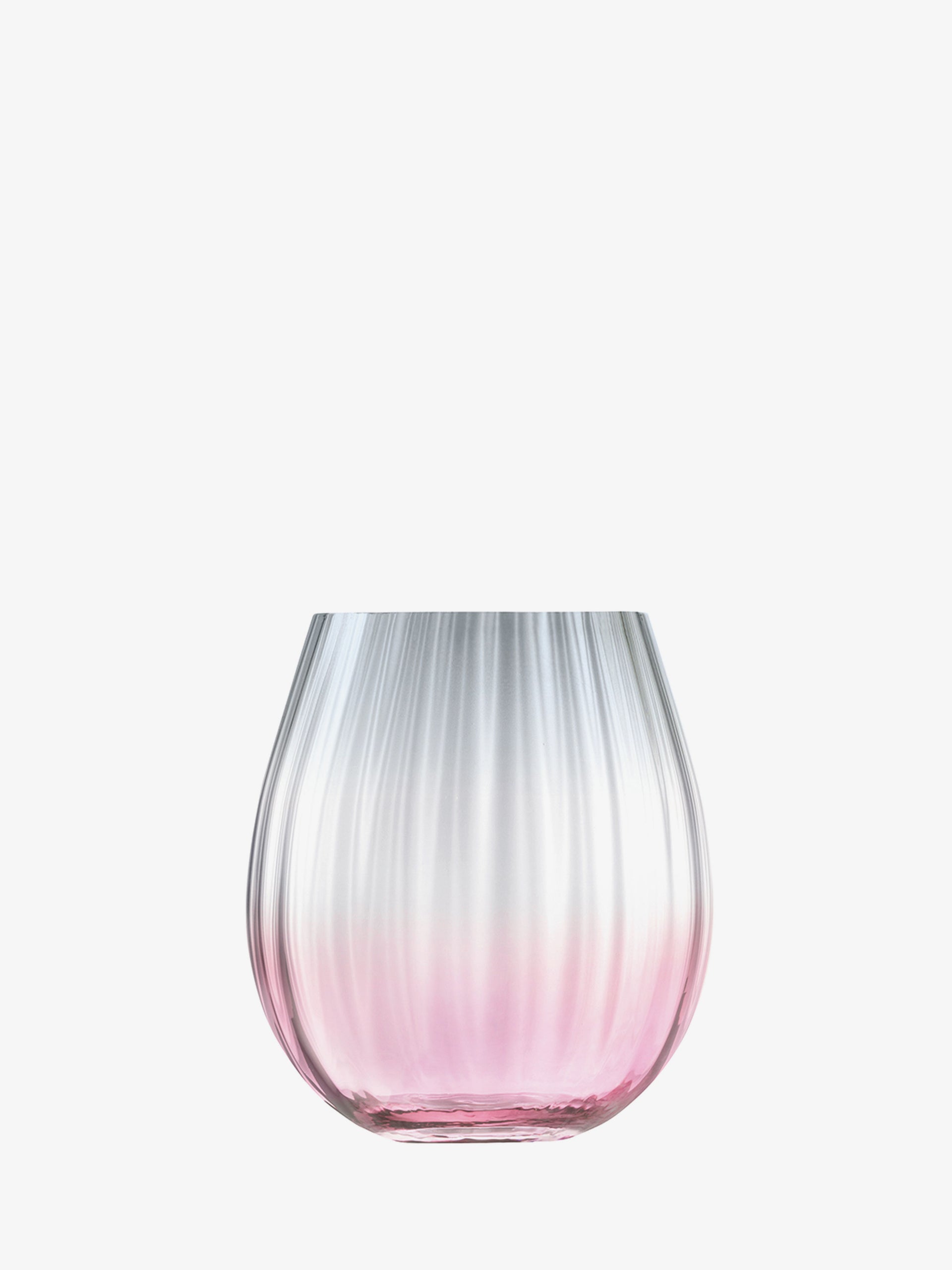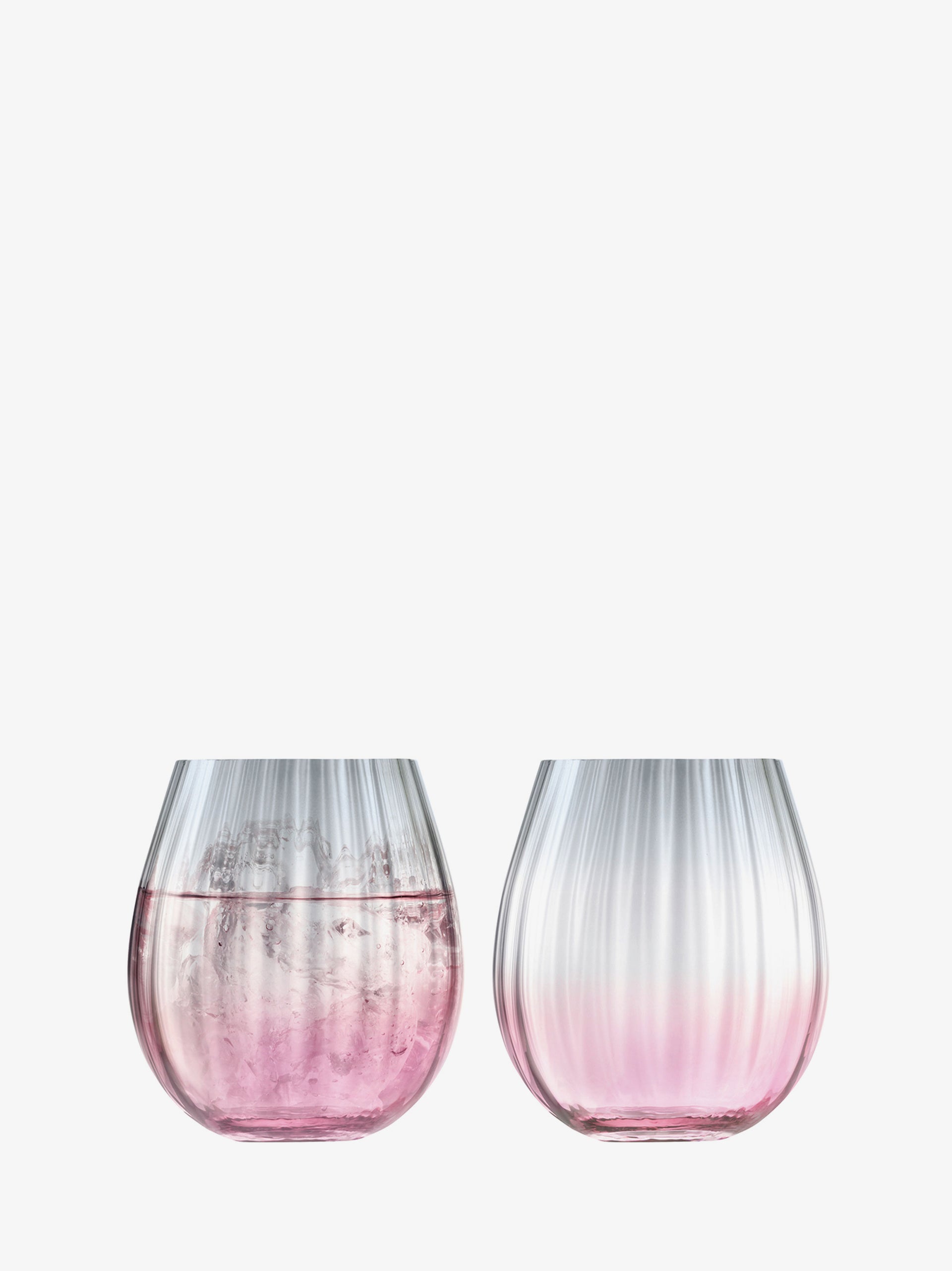 A pair of mouth-blown tumblers with fluted bowls, hand painted by skilled craftspeople with two iridescent lustres. The sheer colours diffuse towards the centre of each piece. A versatile stemless glass for water, wine or cocktails.